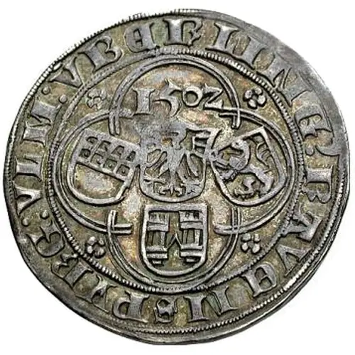| Obverse description | Eagle arms in center, date above, shields of 3 towns around, town names in margin. |