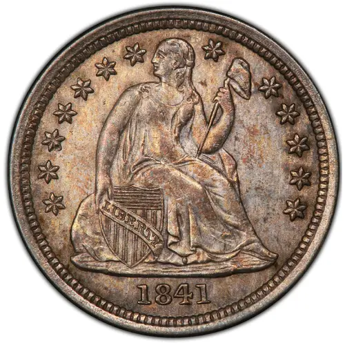 | Obverse description | Seated Liberty looking right above her shoulder, with a cap on a stick and a shield, 13 stars around. |