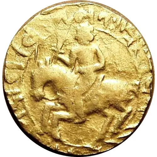 | Obverse description | Horseman galloping left, holding mace, Nagari legend around |