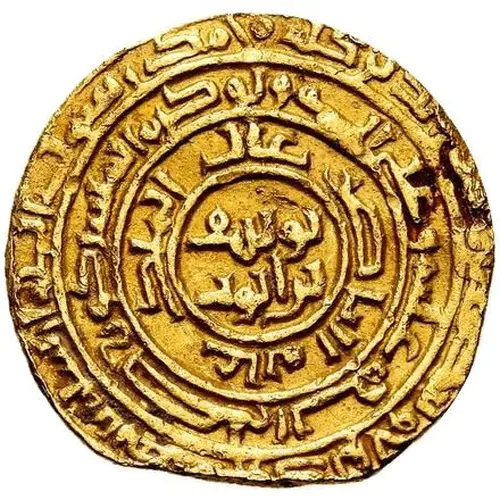 | Reverse description | Legend in three concentric circles, name of caliph al-Mustadi as `al-Imam / al-Hasan` in center; mint and date in outer margin |