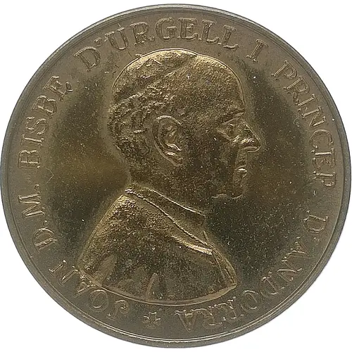 | Obverse lettering | JOAN D.M. BISBE D`URGELL I PRINCEP D`ANDORRA (Translation: Joan D.M. Bishop of Urgell and Prince of Andorra) |