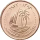 | توضیحات روی سکه | Dates on top. Old emblem of Qatar consisting of a sailing ship (dhow) sailing on waves beside an island with two palm trees. |