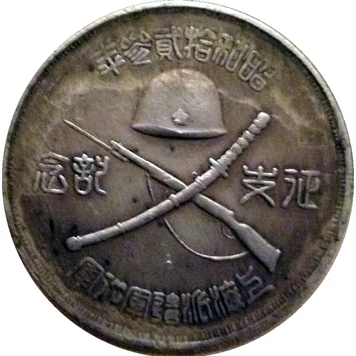 | Obverse lettering | 年参贰拾和昭 念纪支征 军从军遣派海海上 |