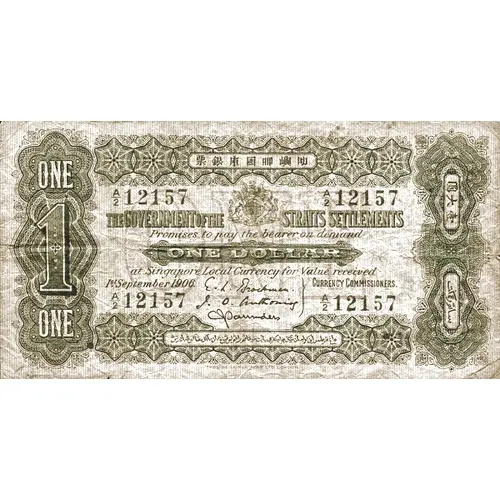 | Obverse lettering | THE GOVERNMENT OF THE STRAITS SETTLEMENTS ONE DOLLAR |