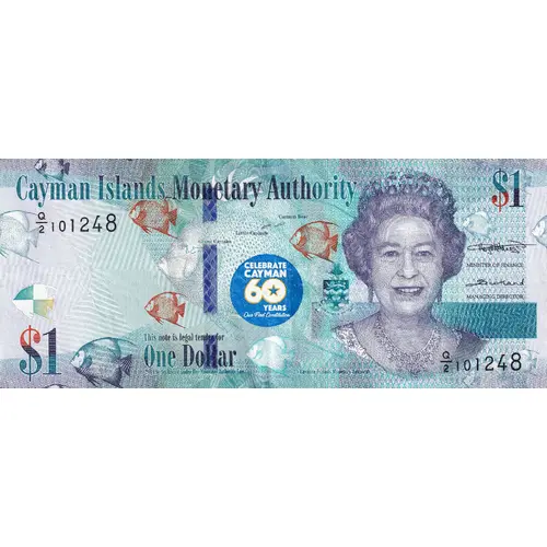 Cayman Islands Monetary Authority $1 Cayman Brac Little Cayman Grand Cayman Celebrate Cayman 60 Years Our First Constitution Minister of Finance Managing Director HE HATH FOUNDED IT UPON THE SEAS This note is legal tender for One Dollar 2018 Series Issued under The Monetary Authority Law © Cayman Islands Monetary Authority |