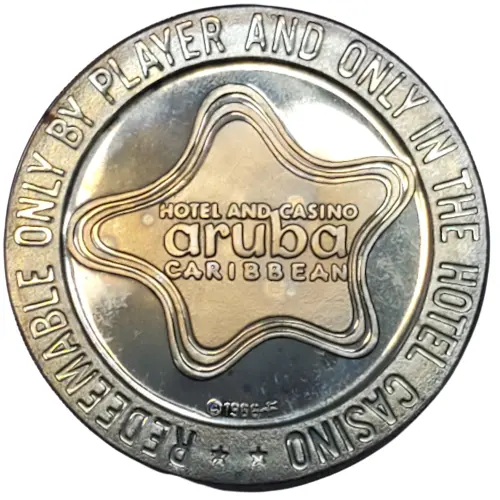 | Obverse lettering | REDEEMABLE ONLY BY PLAYER AND ONLY IN THE HOTEL CASINO HOTEL AND CASINO aruba CARIBBEAN ©1966FM |