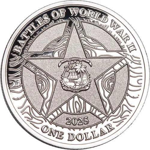 | Obverse lettering | BATTLES OF WORLD WAR II THE LOVE OF LIBERTY BROUGHT US HERE REPUBLIC OF LIBERIA 2025 ONE DOLLAR |