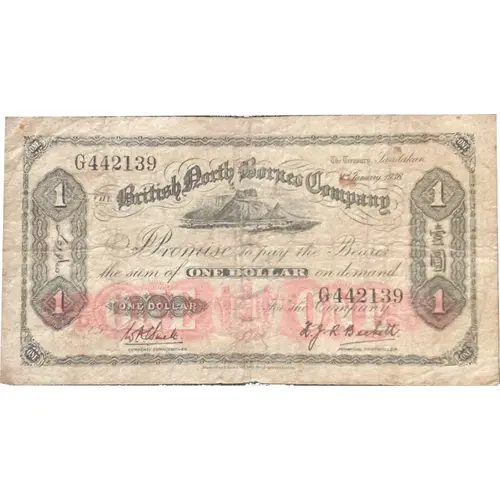 | Obverse lettering | The British North Borneo Company Promise to pay the Bearer the sum of ONE DOLLAR on demand |