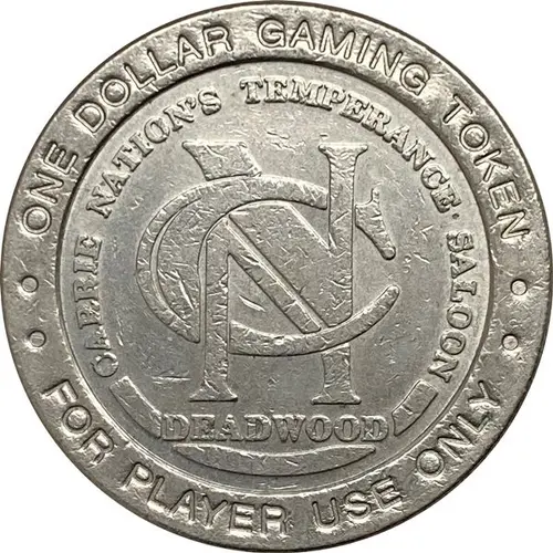 | Obverse lettering | ONE DOLLAR GAMING TOKEN CARRIE NATION`S TEMPERANCE SALOON CN DEADWOOD FOR PLAYER USE ONLY |