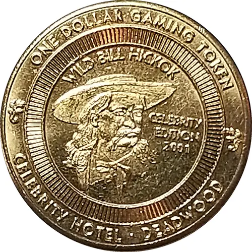 | Obverse lettering | ONE DOLLAR GAMING TOKEN WILD BILL HICKOK 2001 CELEBRITY EDITION CELEBRITY HOTEL DEADWOOD |