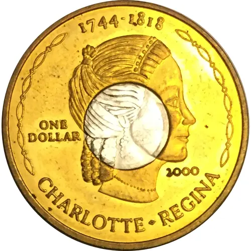 | Obverse lettering | 1744-1818 ONE DOLLAR 2000 CHARLOTTE-REGINA |