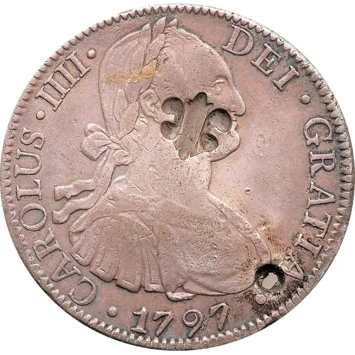 | Obverse description | Charles IV Mexico 8 Reales with Fleur de Lis counterstamp. |