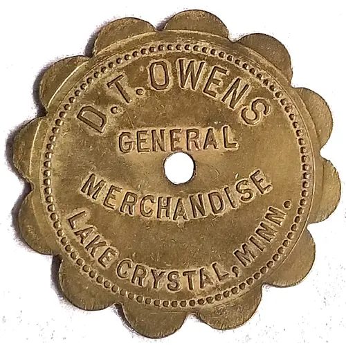 | Obverse lettering | D.T. OWENS GENERAL MERCHANDISE LAKE CRYSTAL, MINN. |