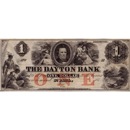 | Obverse lettering | MINNESOTA THE DAYTON BANK will pay ONE DOLLAR to the bearer on demand. St. Paul, _____185__ SECURED BY THE PLEDGE OF PUBLIC STOCKS AND REAL ESTATE |