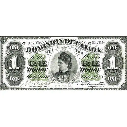 | Obverse lettering | ONE THE DOMINION OF CANADA WILL PAY ONE Dollar Toronto. 1st. June 1878. |