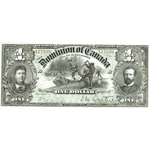 OTTAWA JULY 2ND 1897 1 ONE The Dominion of Canada WILL PAY TO THE BEARER ONE DOLLAR AMERICAN BANK NOTE CO., OTTAWA |