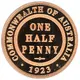 | Reverse lettering | COMMONWEALTH OF AUSTRALIA ONE HALF PENNY 1923 |