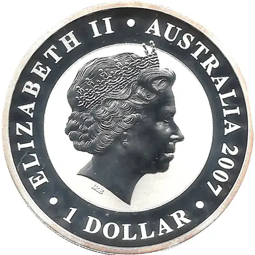 | Obverse lettering | ELIZABETH II AUSTRALIA 2007 1 DOLLAR IRB |