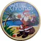 | Reverse description | Santa Claus sitting on a beach with gifts, decorated palm tree to the left |