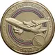 Within an inner ring of White, Red & White and extending through it a Airbus A380. Outside the inner ring 4 jet aircraft flying around the ring. To the lower right in a small circle the Kangaroo Logo of Qantas in a triangle. The words AIRBUS A380 at the top of the ring and the word QANTAS below. |