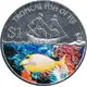 | Reversbeschreibung | Colored albino yellow fish left, in front of coral, below sailing ship between value (left) and island with two palm trees (right). |