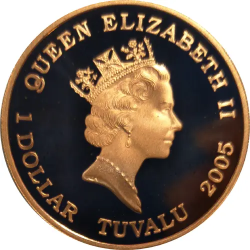 | Chữ khắc mặt trước | QUEEN ELIZABETH II RDM 1 DOLLAR TUVALU 2005 |