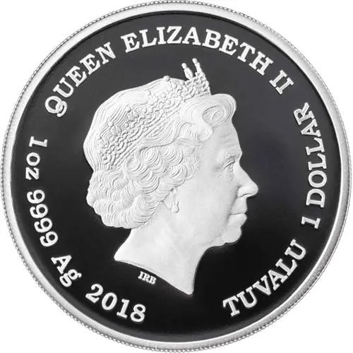 | Obverse lettering | QUEEN ELIZABETH II IRB 1oz 9999 Ag 2018 TUVALU 1 DOLLAR |