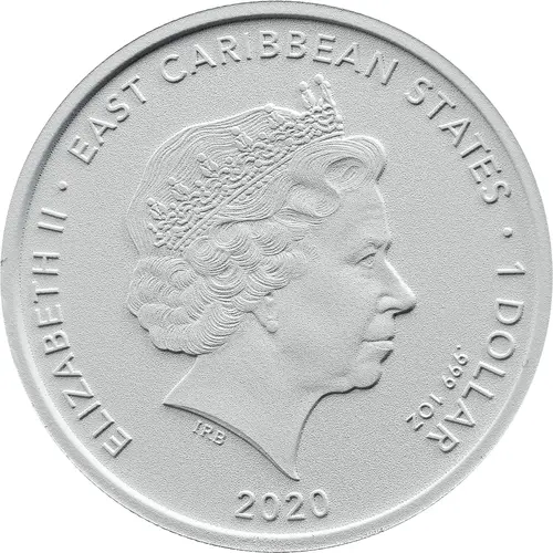 | Obverse lettering | ELIZABETH II • EAST CARIBBEAN STATES • 1 DOLLAR .999 1OZ IRB 2020 |