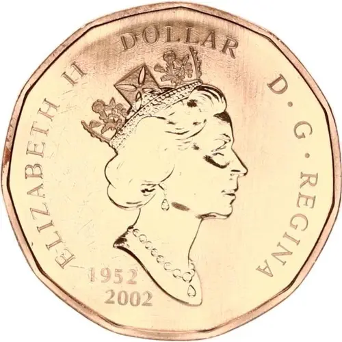 | Obverse lettering | ELIZABETH II DOLLAR D·G·REGINA 1952 2002 (Translation: Elizabeth II Queen by the grace of God) |