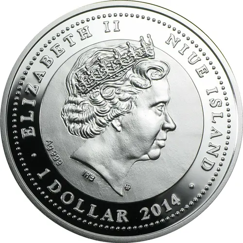 | Obverse lettering | ELIZABETH II NIUE ISLAND Ag 999 IRB mw · 1 DOLLAR 2014 · |