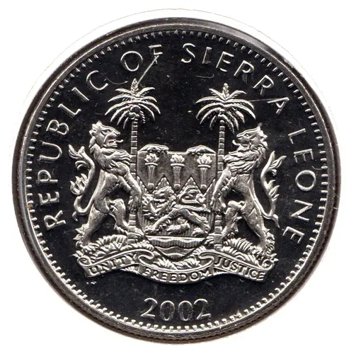 | Obverse lettering | REPUBLIC OF SIERRA LEONE UNITY FREEDOM JUSTICE 2002 |