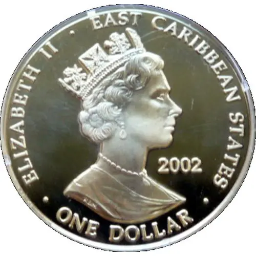 | Obverse lettering | ELIZABETH II · EAST CARIBBEAN STATES 2002 RDM ONE DOLLAR |
