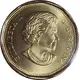 Designed by Canadian artist Steve Hepburn, the dollar coin’s playfully patriotic reverse combines two famous symbols of Canada: the beaver and the Canadian flag. |