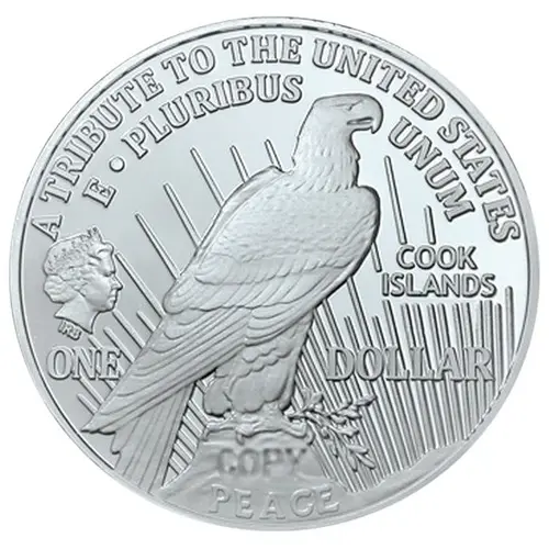 | Obverse lettering | A TRIBUTE TO THE UNITED STATES E · PLURIBUS UNUM COOK ISLANDS IRB ONE DOLLAR COPY PEACE |