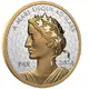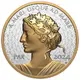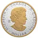 | Opis rewersu | Lady Peace is depicted in profile with her hair crowned in a wreath of olive branches and maple leaves, which inspired the field pattern. |