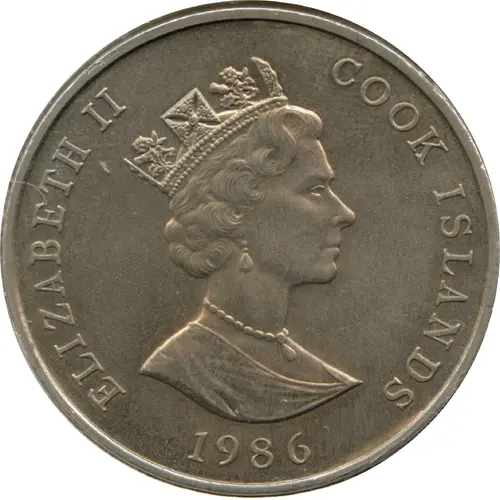 | Obverse lettering | ELIZABETH II COOK ISLANDS RDM 1986 |