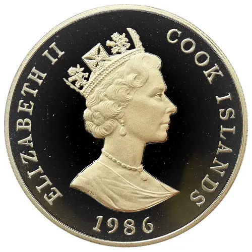 | Obverse lettering | ELIZABETH II COOK ISLANDS RDM 1986 |