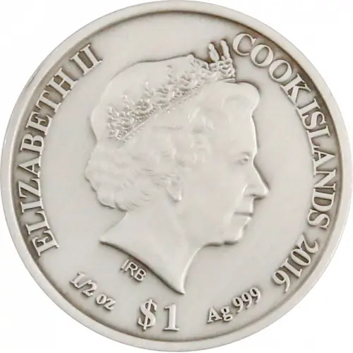 | Obverse lettering | ELIZABETH II COOK ISLANDS 2016 IRB 1/2 oz $1 Ag 999 |