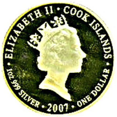 | Obverse lettering | ELIZABETH II * COOK ISLANDS 1oz 999 SILVER *2007* ONE DOLLAR |