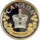 The reverse design by Canadian artist François Guitard pays homage to Queen Elizabeth II and features the Imperial State Crown framed by maple leaves and roses. |