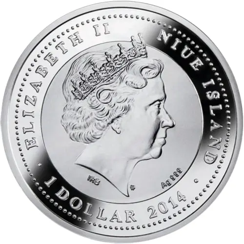 | Obverse lettering | ELIZABETH II NIUE ISLAND Ag 999 IRB • 1 DOLLAR 2014 • |