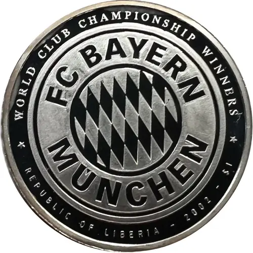| Obverse lettering | WORLD CLUB CHAMPIONSHIP WINNERS FC BAYERN MUNCHEN REPUBLIC OF LIBERIA - 2002 - $ 1 |