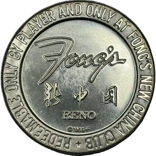 | Obverse lettering | REDEEMABLE ONLY BY PLAYER AND ONLY AT FONG`S NE CHINA CLUB Fong`s RENO © 1966 FM |
