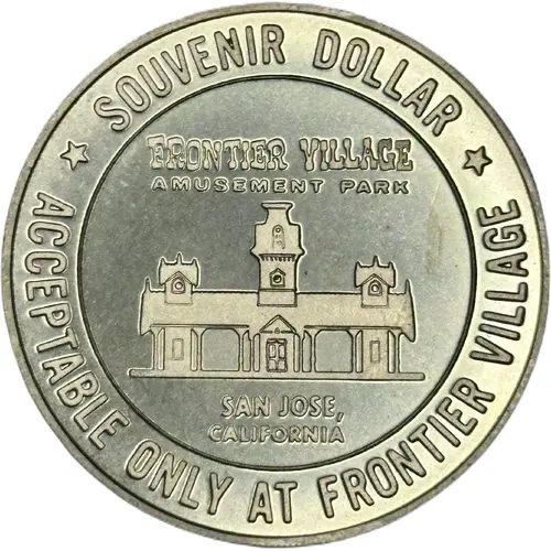 | Obverse lettering | SOUVENIR DOLLAR FRONTIER VILLAGE AMUSEMENT PARK SAN JOSE, CALIFORNIA ACCEPTABLE ONLY AT FRONTIER VILLAGE |