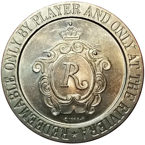 | Obverse lettering | REDEEMABLE ONLY BY PLAYER AND ONLY AT THE RIVIERA R 1966 FM |