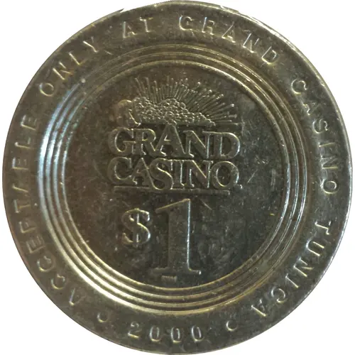 | Obverse lettering | ACCEPTABLE ONLY AT GRAND CASINO TUNICA GRAND CASINO $1 RWM 2000 |