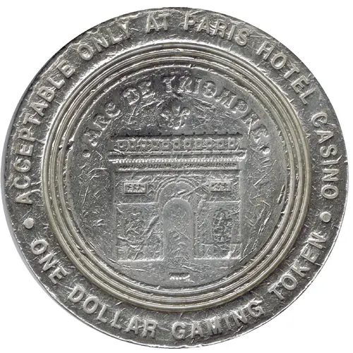 | Obverse lettering | ACCEPTABLE ONLY AT PARIS HOTEL CASINO ARC DE TRIOMPHE ONE DOLLAR GAMING TOKEN |