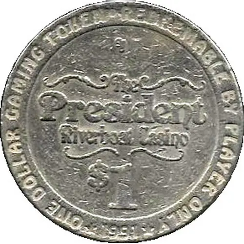 | Obverse lettering | One Dollar Gaming Token Redeemable By Player Only The President Riverboat Casino $1 1991 |
