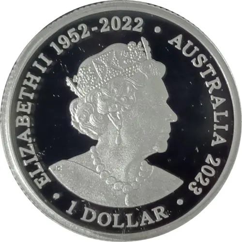 | Obverse lettering | ELIZABETH II 1952 - 2022 AUSTRALIA 2023 1 DOLLAR JC |