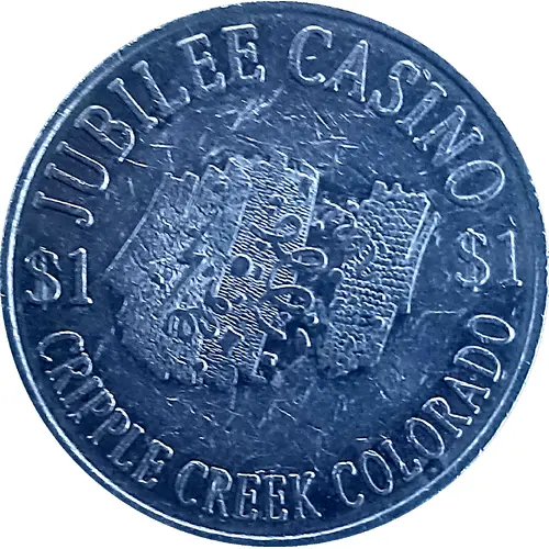 | Obverse lettering | $1 JUBILEE CASINO $1 CRIPPLE CREEK COLORADO |